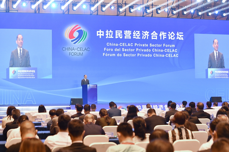 On May 24, the China-CELAC Private Sector Forum was held in Dongguan, Guangdong Province. Xu Lejiang, executive vice chairman of All-China Federation of Industry and Commerce (ACFIC), Lv Yuyin, vice governor of Guangdong Province, Carlos Larrea, Ambassador of Ecuador to China, and Xu Wei, Minister Counselor of the Department of Latin American and Caribbean Affairs of the Foreign Ministry, attended the forum and delivered speeches. Teresa Mera, deputy minister of foreign trade of the Ministry of Foreign Trade and Tourism (MINCETUR) of Peru, addressed the forum via video link. The forum was presided over by Chen Liwen, executive vice chairman of Guangdong Federation of Industry and Commerce.