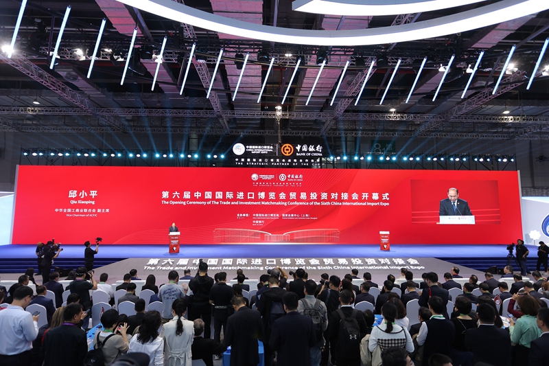 On November 6, Qiu Xiaoping, vice chairman of All-China Federation of Industry and Commerce (ACFIC), attended and delivered a speech at the opening ceremony of the Trade and Investment Matchmaking Conference of the 6th China International Import Expo (CIIE), which was co-organized by China International Import Expo Bureau, National Exhibition and Convention Center (Shanghai) and Bank of China. Vice Minister Sheng Qiuping delivered a video speech. Hua Yuan, vice mayor of Shanghai, Liu Jin, president of Bank of China, Ceferino S. Rodolfo, undersecretary of Department of Trade and Industry of the Philippines and managing head of the Board of Investment, and Veerapong Malai, director-general of the Office of Small and Medium Enterprises Promotion of Thailand, attended the opening ceremony and delivered speeches.